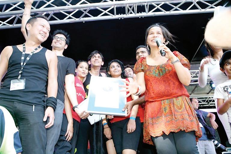 Prior to the formal attempt the Shiamak Indo Jazz Dance Movement (SIJDM) instructors sorted the crowd into smaller