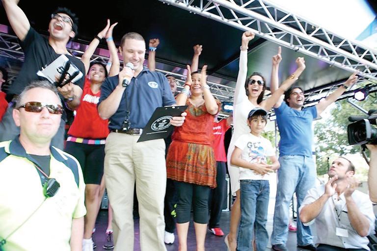 The excitement was palpable as the Munni song boomed over the audience and everyone attempted to imitate the instructors on stage. It was heartening to see the rows and rows of people joining in to get Australia into the record books. Three minutes of non-stop dancing was a mandatory requirement to be counted and people did not disappoint. The sizzle quotient rose as Munni Malaika Arora fell in step with the instructors. Cheery was an understatement as the crowd positively reveled in the rock concert like atmosphere. As the official from Guinness Book of world records declared later to