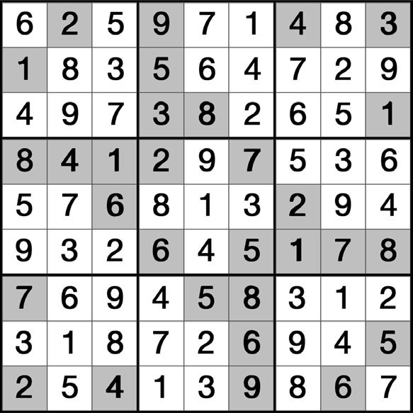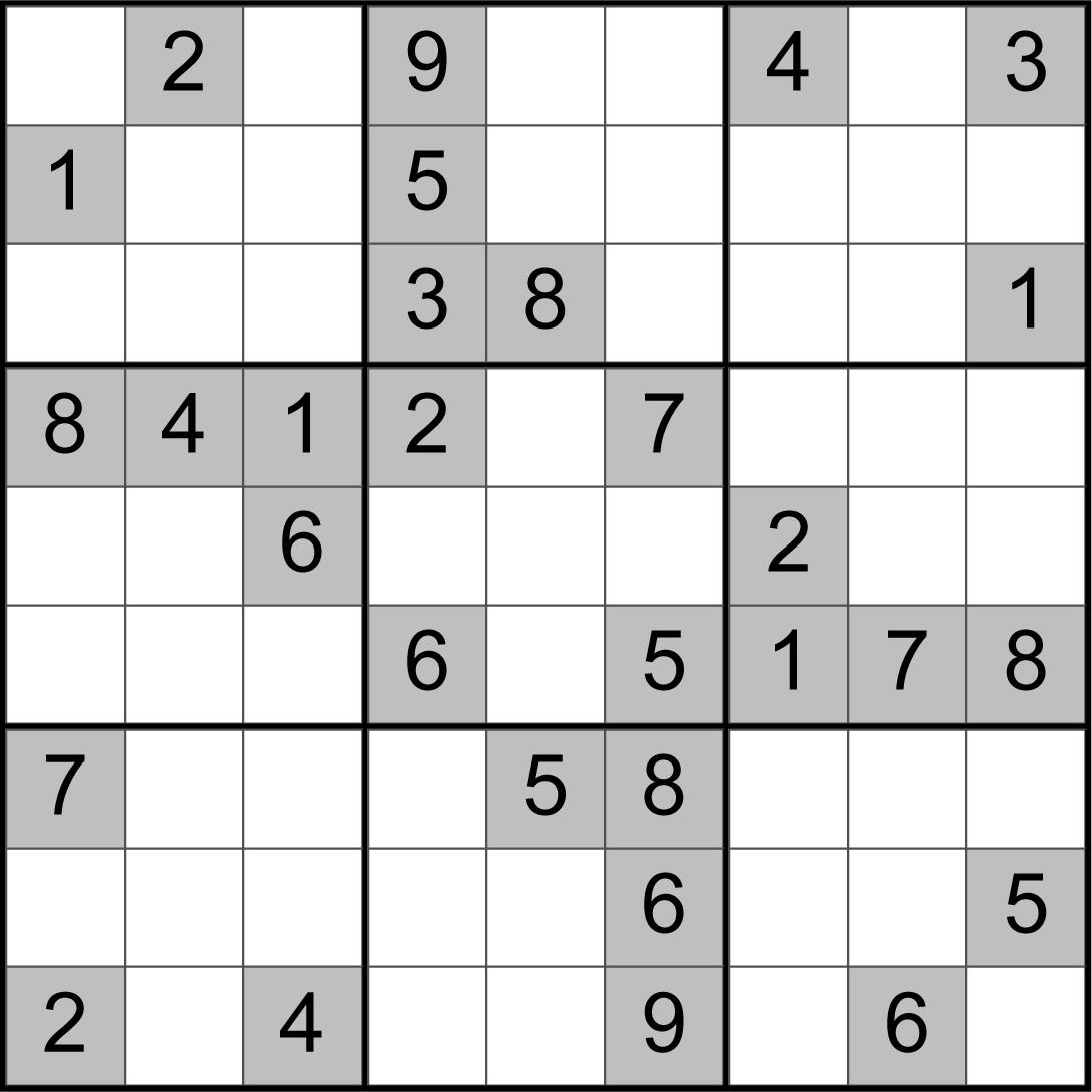 Sodoku is a puzzle that you solve with reasoning and logic. Fill in the grid with digits 1 to 9 in a manner that each row, column and region contains these nine numbers with no repetition.