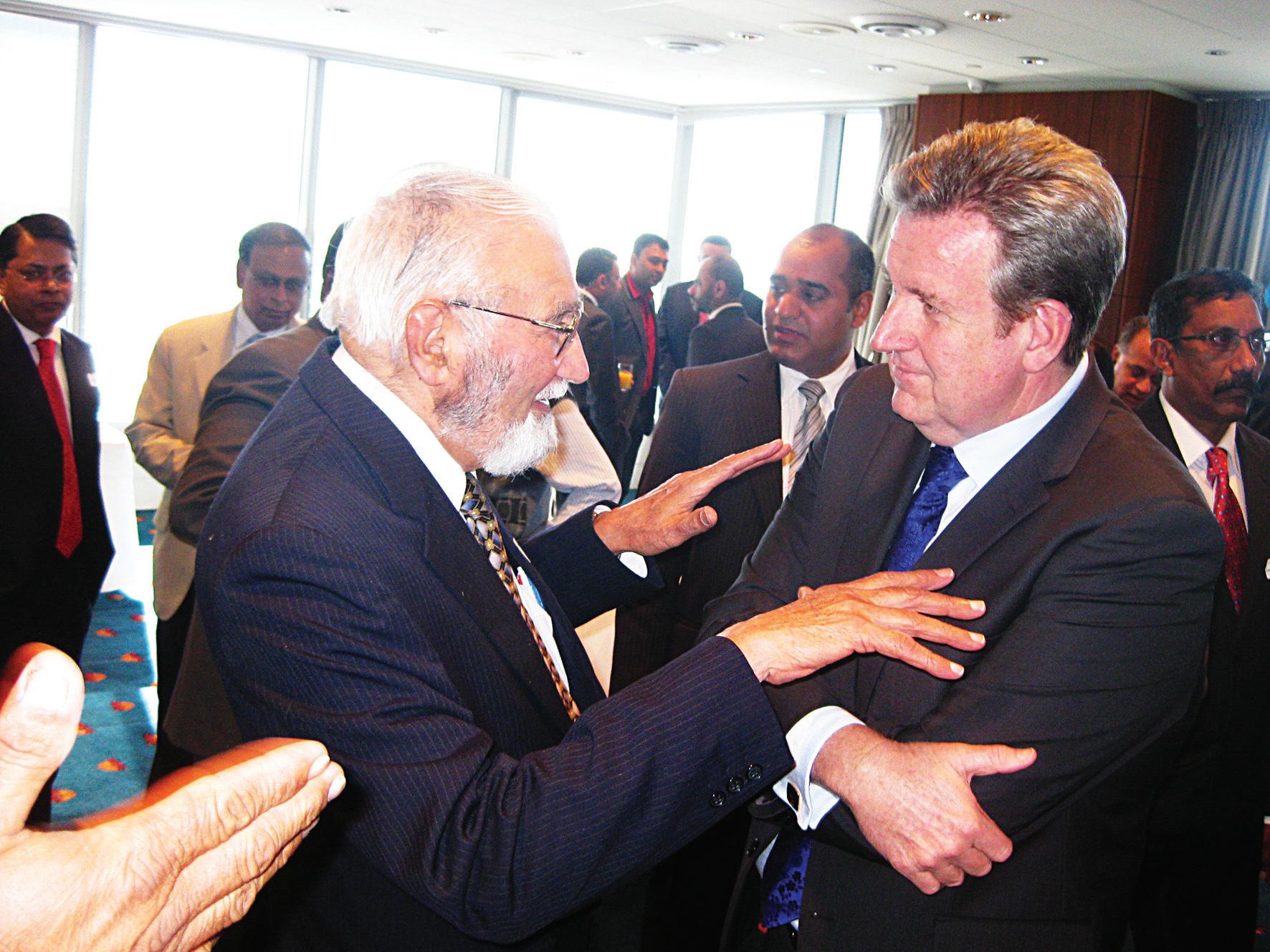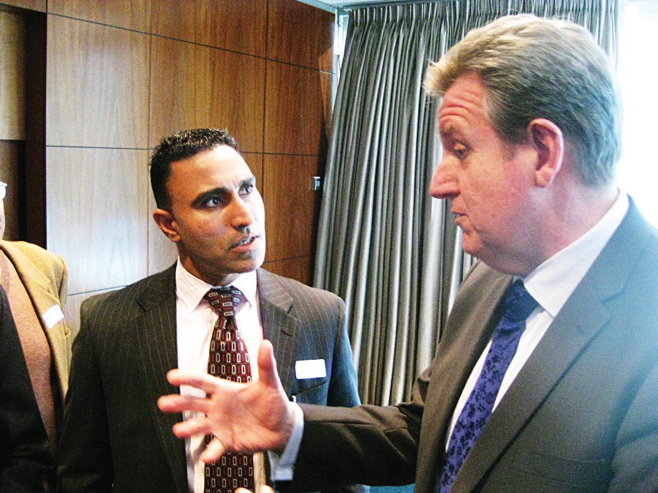 The Honorary Coordinator of TLC, Susai Benjamin shaking hands with The Honourable Robert McClelland, Federal Attorney-General (right).