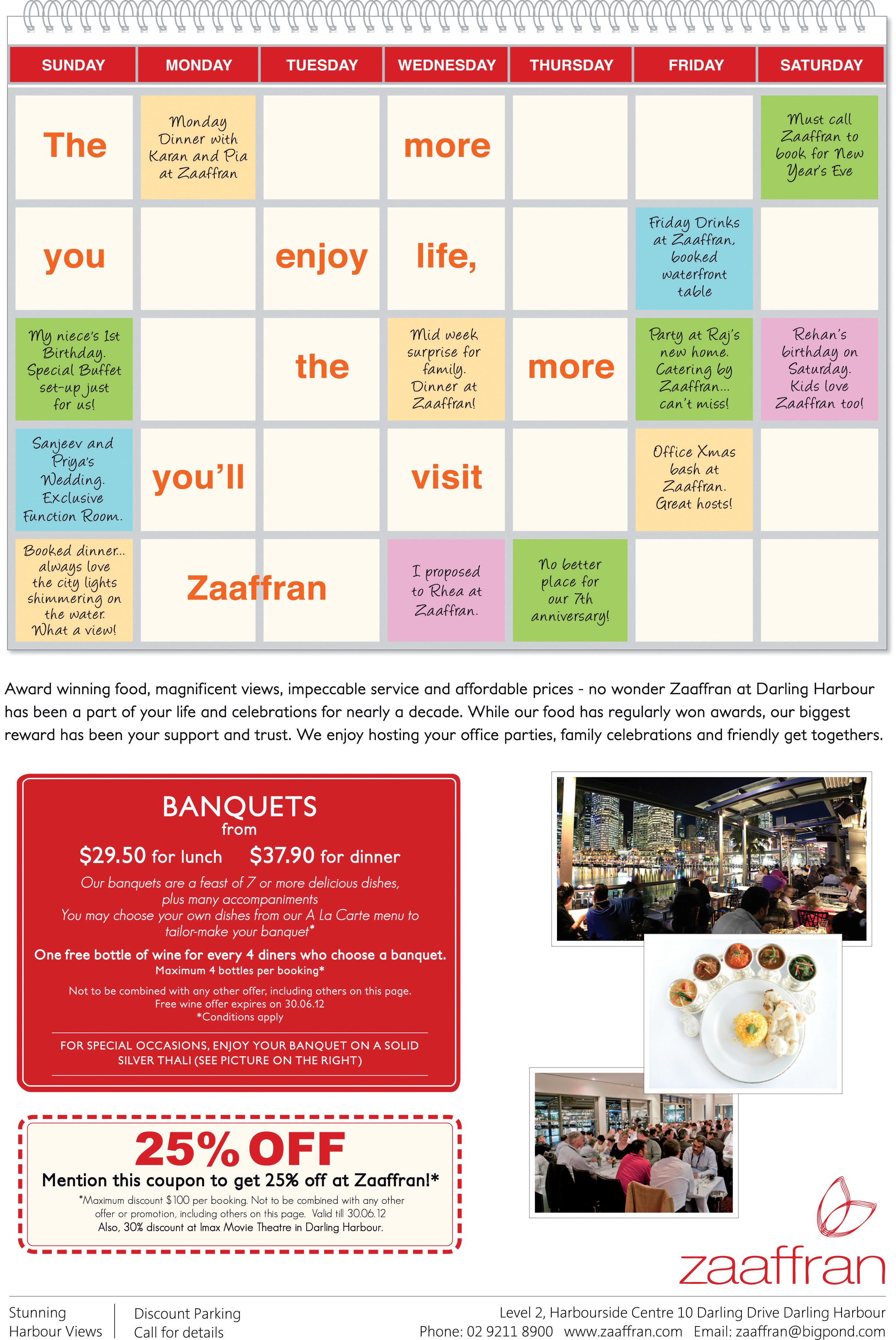 4 APRIL (2) 2012 www.indianlink.com.au TUESDAY SPECIAL 30% off on all Main CourseCurries (Dine-in only) DELICIOUS SPECIAL PUNJABI DISHES for weekends OPEN DAILY FOR LUNCH & DINNER Free home/oFFice delivery within 5kms radius... min order $30 Byo (alcohol only)