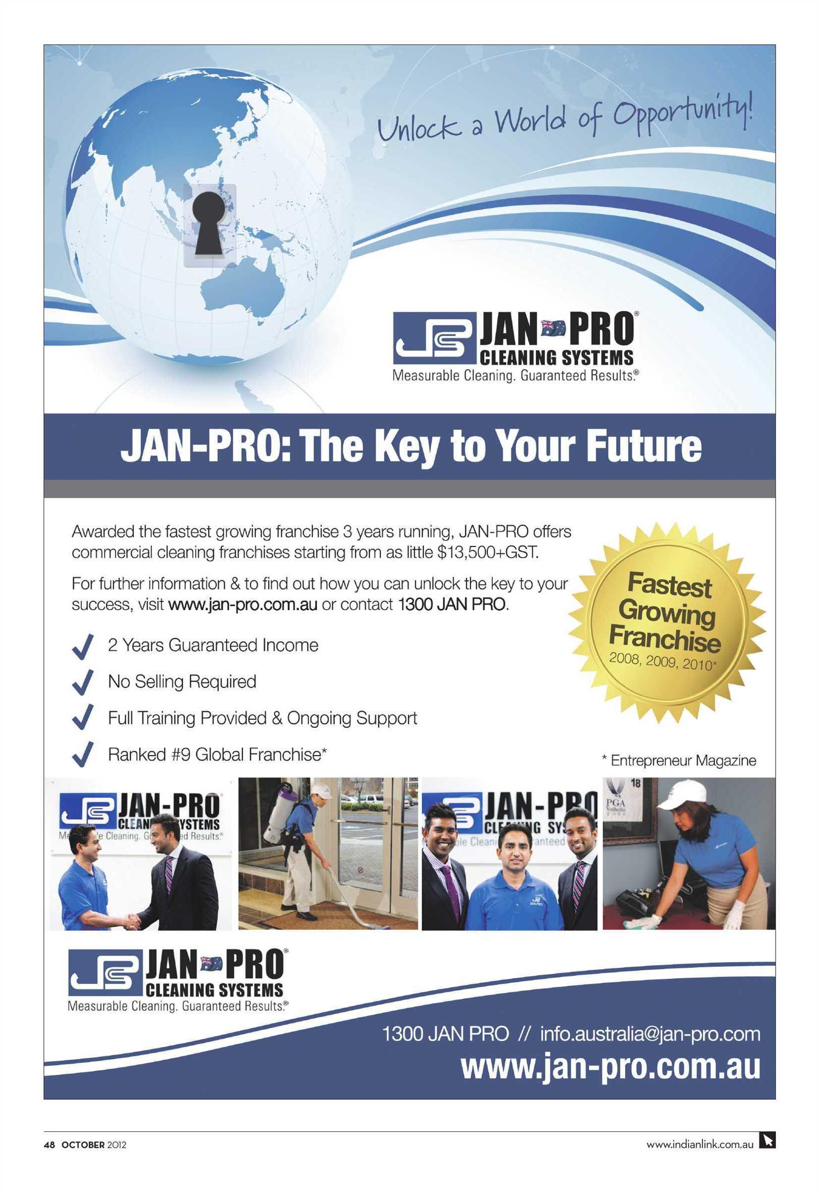 For further information & to find out how you can un lock the key to your success, visit www.jan-pro.com.au or contact 1300 JAN PRO .
