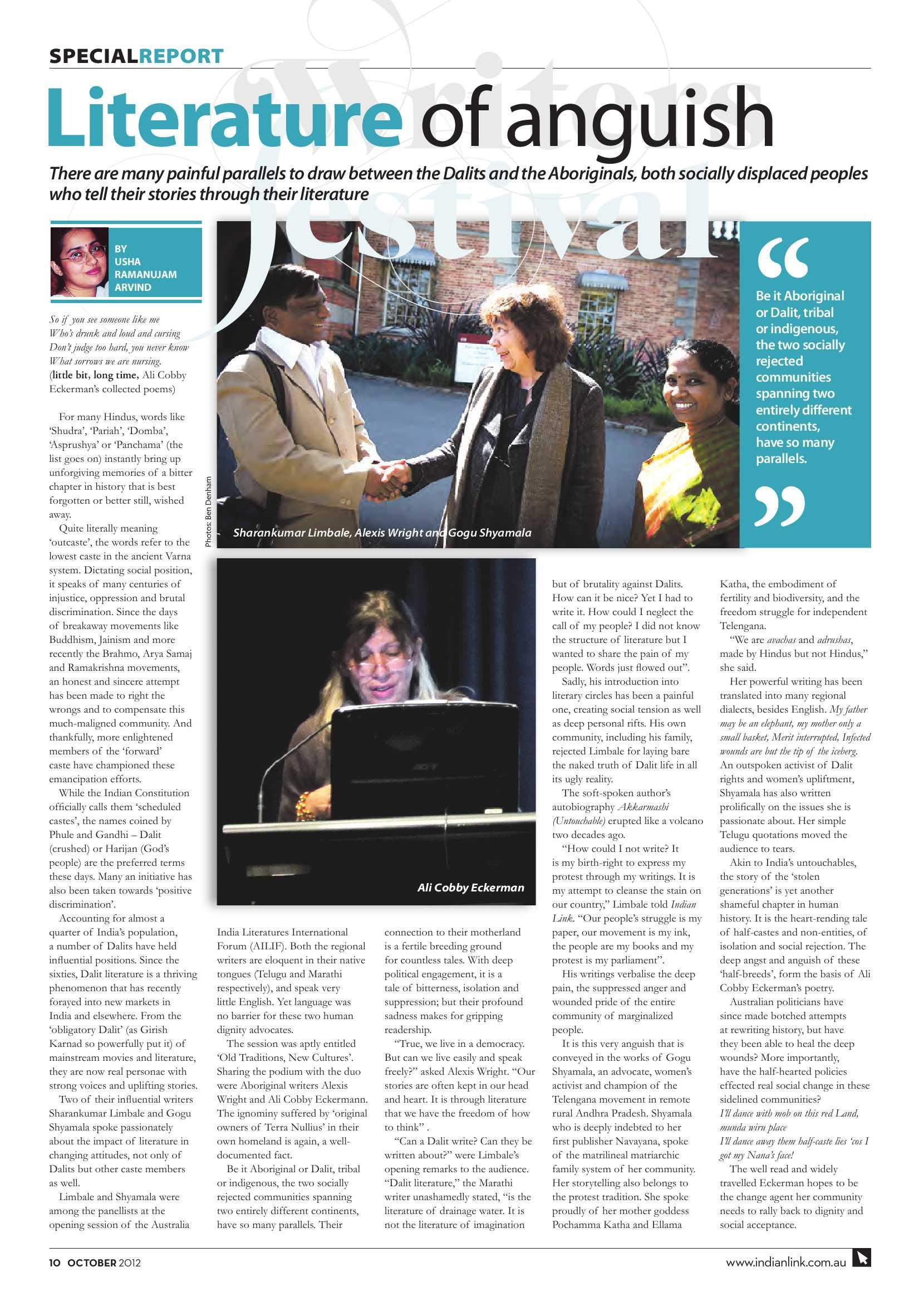 1 2 Indian wr iters. 24 Australian \\•Titers. Inmunerable stories. Th.is was the A u stralia India Literatures International Forum (AILIF), held at our magnificent house of books, the Scace Library of r ew South Wales from September 4 to 6, 2012. The legen dary writer and actor Girish Ka.mad led a stellar contingent of writers from India who shared the space with many Australian writers including award wi nning Indigenous wr iters Alexis Wright and Ali Cobby E ckermann.