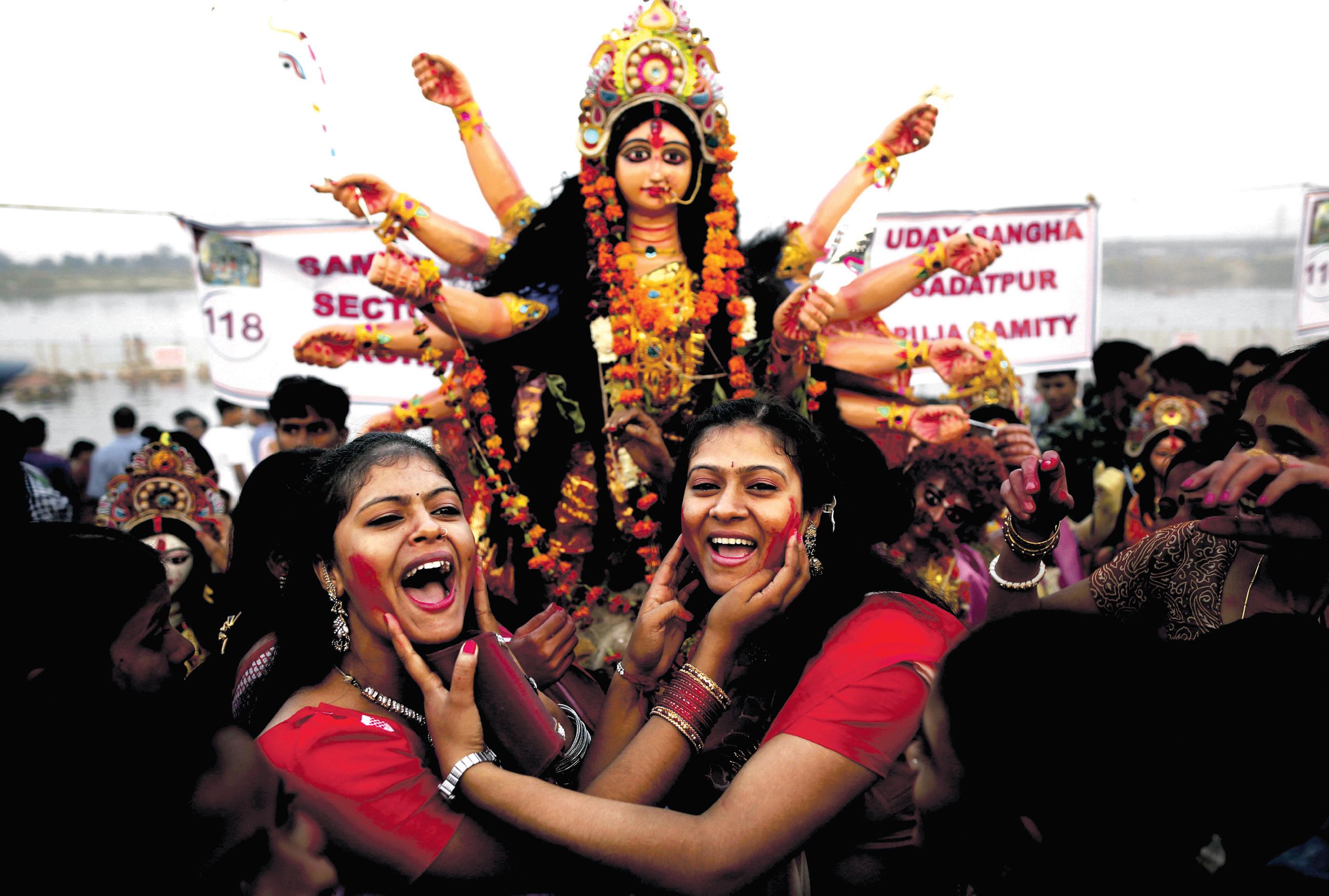 festival serves as an annual reminder. Dusshera celebrations in Mysore and Durga puja in Bengal are very well known all over the land. During Navratri, in many Tamil households statuettes of goddesses are decorated and displayed in layers of steps (kolu) and women are invited to join in special prayers.