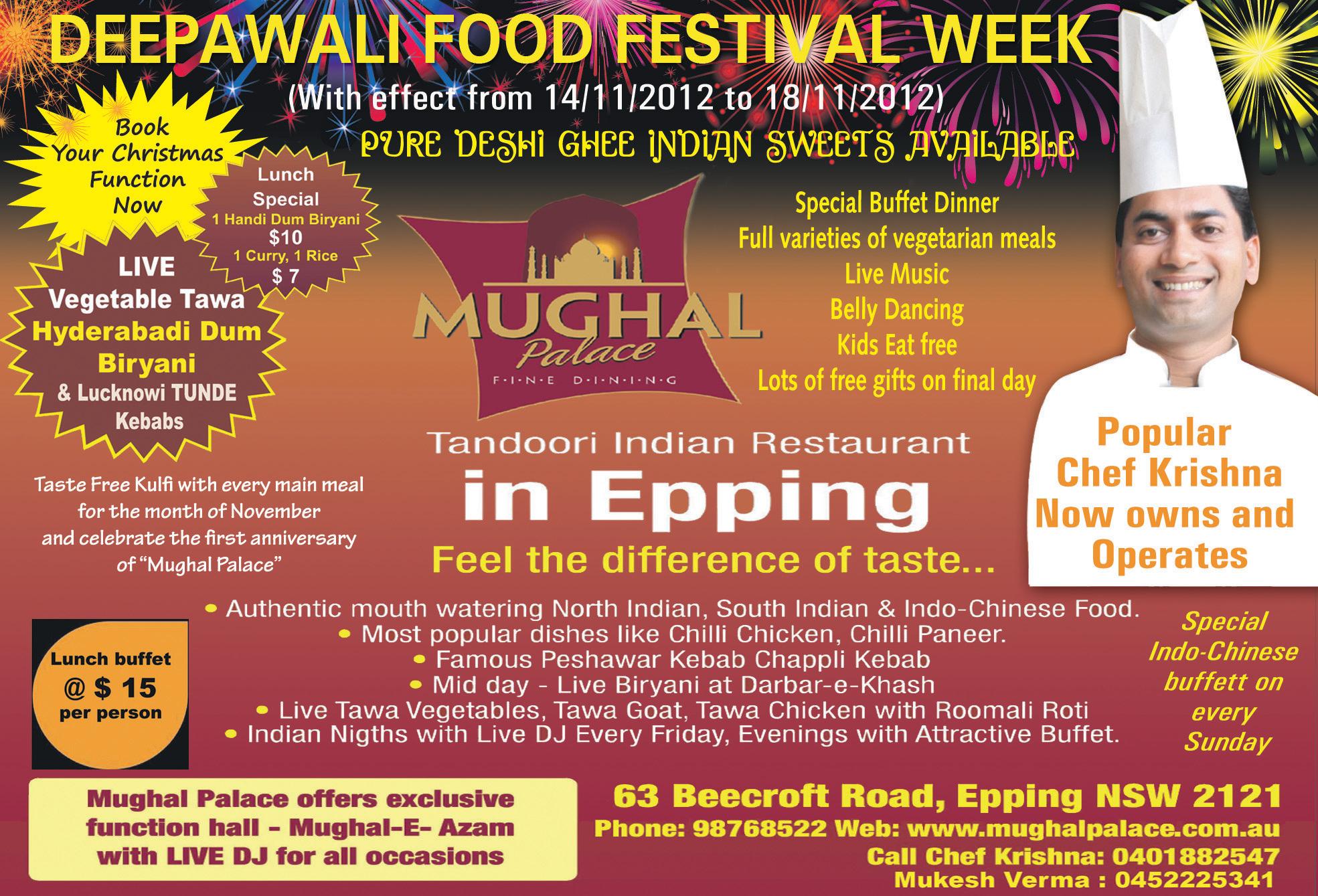 Sat 10 Nov Celebrate Diwali with friends on the North Shore: Laxmi Poojan, cultural program, lucky draw prizes, dinner. Town Hall, 1186 Pacific Highway, Pymble NSW, 6.00pm. Details Kamini Sahni 0401 059 923.