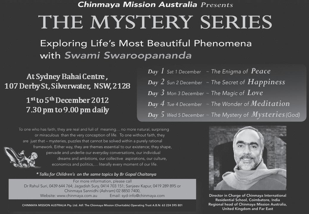 Venue: Vedanta Hall, 15 Liverpool Road, Croydon. Details 02 9745 4320 or email: