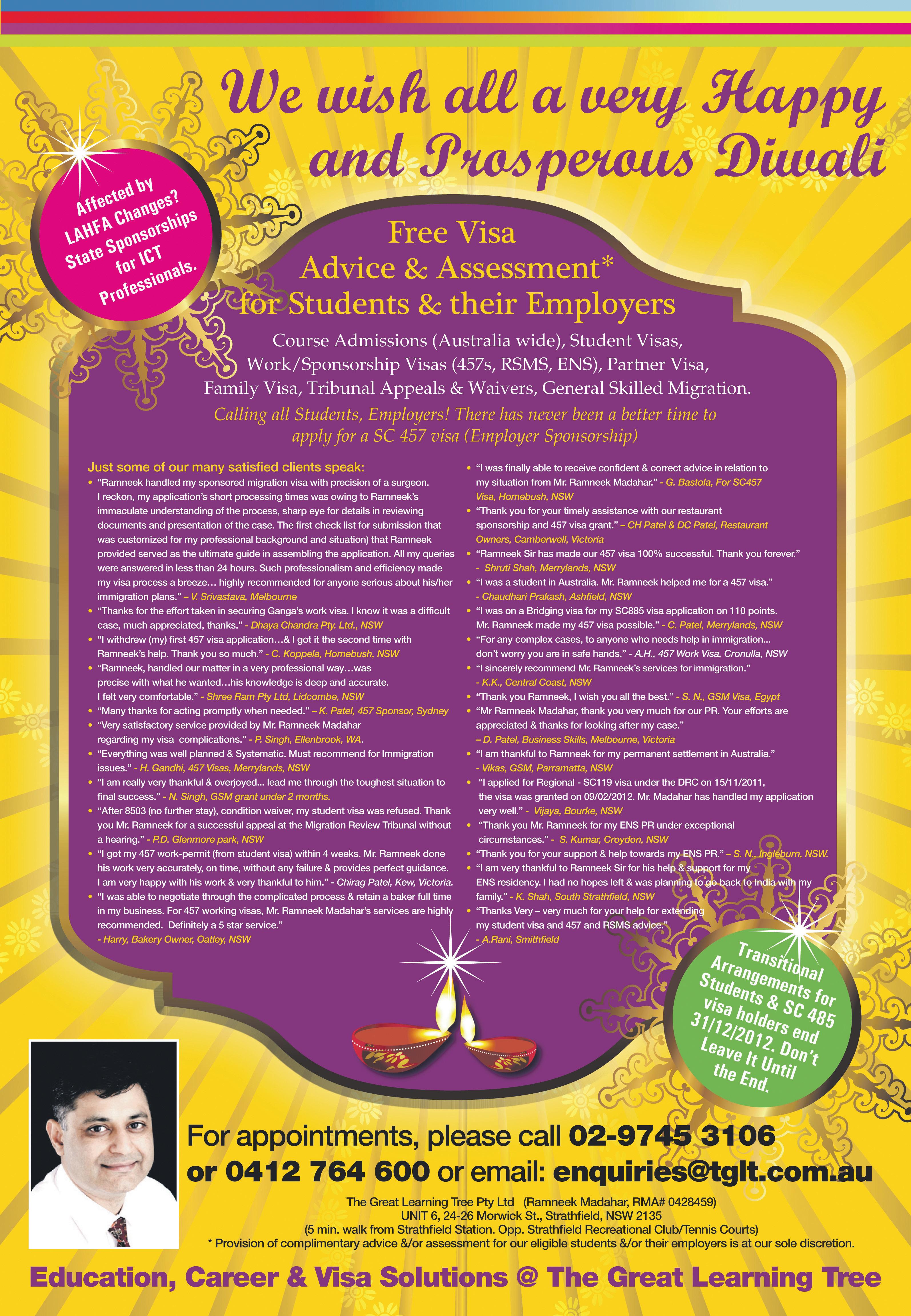 Sat 10 Nov Vision 2020 celebrates Diwali with a 3-course dinner and variety entertainment at Asquith Community Centre, 10a Old Berowra Road, Hornsby. It is also organising the ordering of Diwali sweets and savouries from Grand Sweets Adayar Ananda Bhavan, Chennai. Details Vision2020au@gmail.com