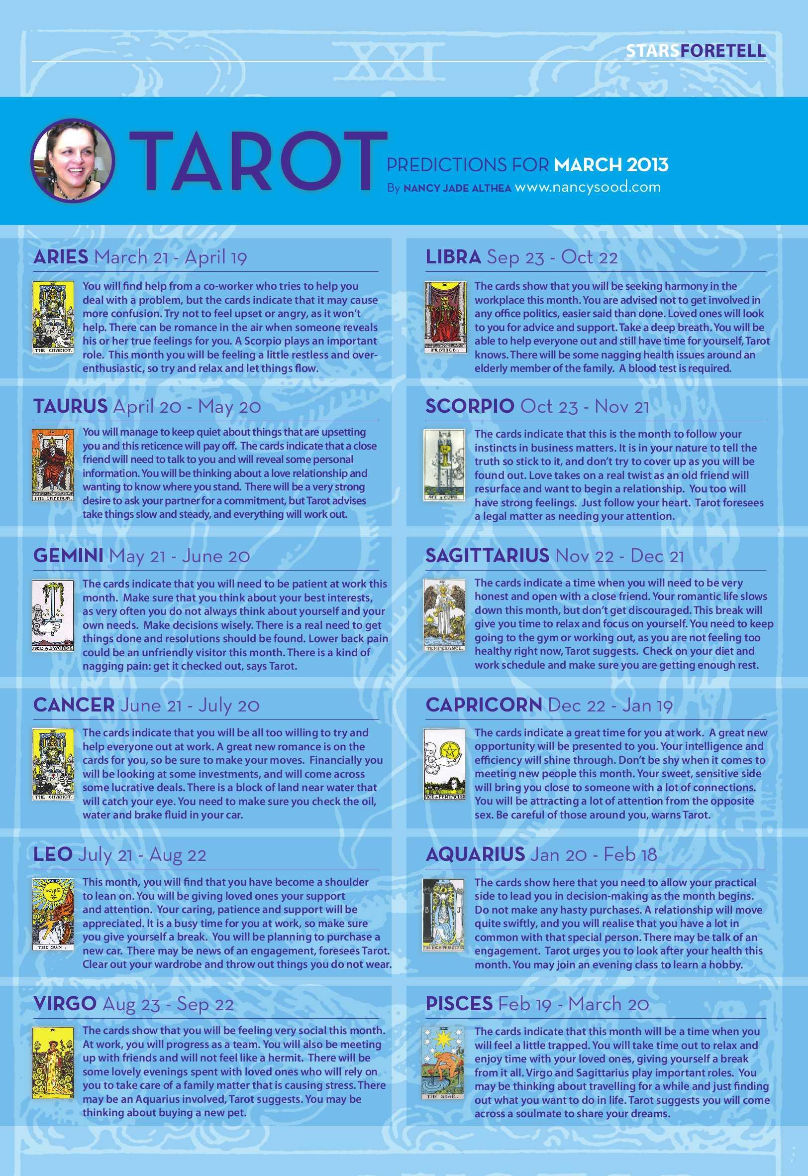 This month, you will find that you have become a shoulder to lean on. You will be giving loved ones your support and attention. Your caring, patience and support will be appreciated. It is a busy time for you at work, so make sure you give yourself a break. You will be planning to purchase a new car. There may be news of an engagement, foresees Tarot Clear out your wardrobe and throw out things you do not wear.