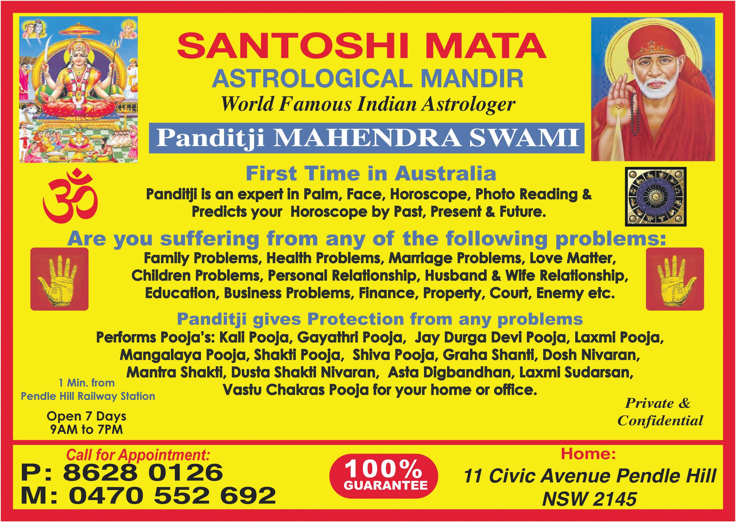 Mohan Prasad Madan is holding a “Vedic Havan” in memory of his loving wife Late Smt. Sushila Prasad at Bhartiye Mandir (42 Kibo Road, Regents Park, Sydney, NSW 2143), followed by prasad and Priti Bhoj. Details M. M. Prasad & family 02 8034 6262, 0400 890 130.