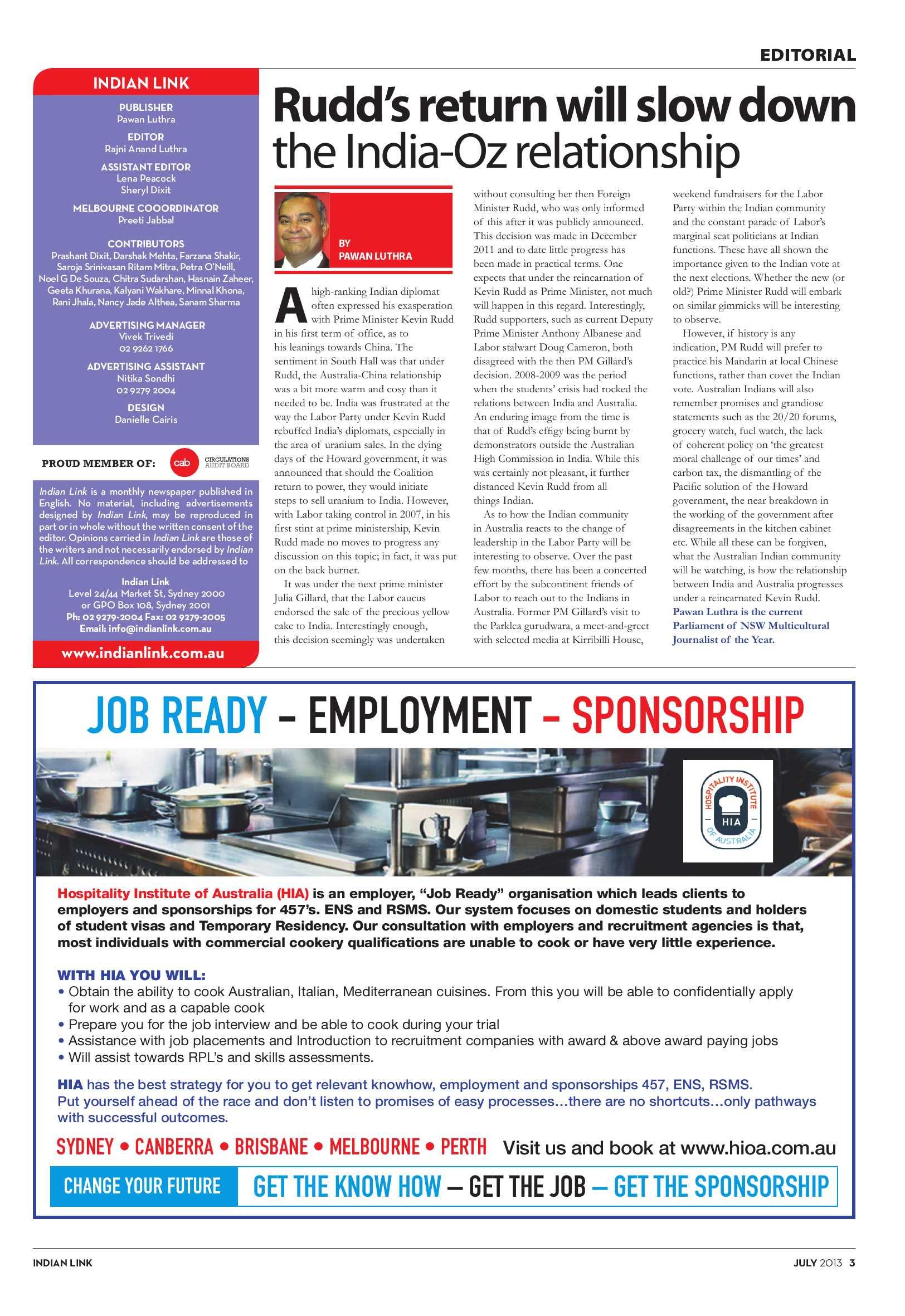 SYDNEY• CANBERRA• BRISBANE• MELBOURNE• PERTH Visit us and book at www.hioa.com.au WWW GET THE KNOW HOW - GET THE JOB - GET THE SPONSORSHIP I INDIAN LINK JULY 2 0 13 3