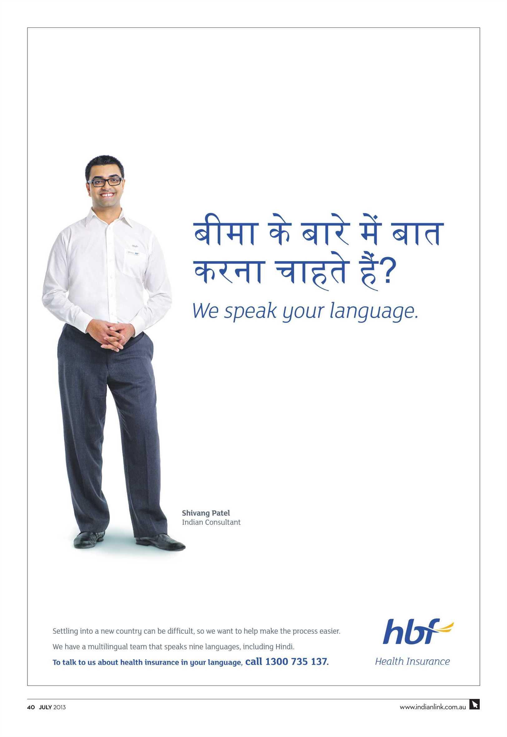 We have a multilingual team that speaks nine language s, including Hindi. To talk to us about health insuran c e in your langu age , call 1300 735 137.