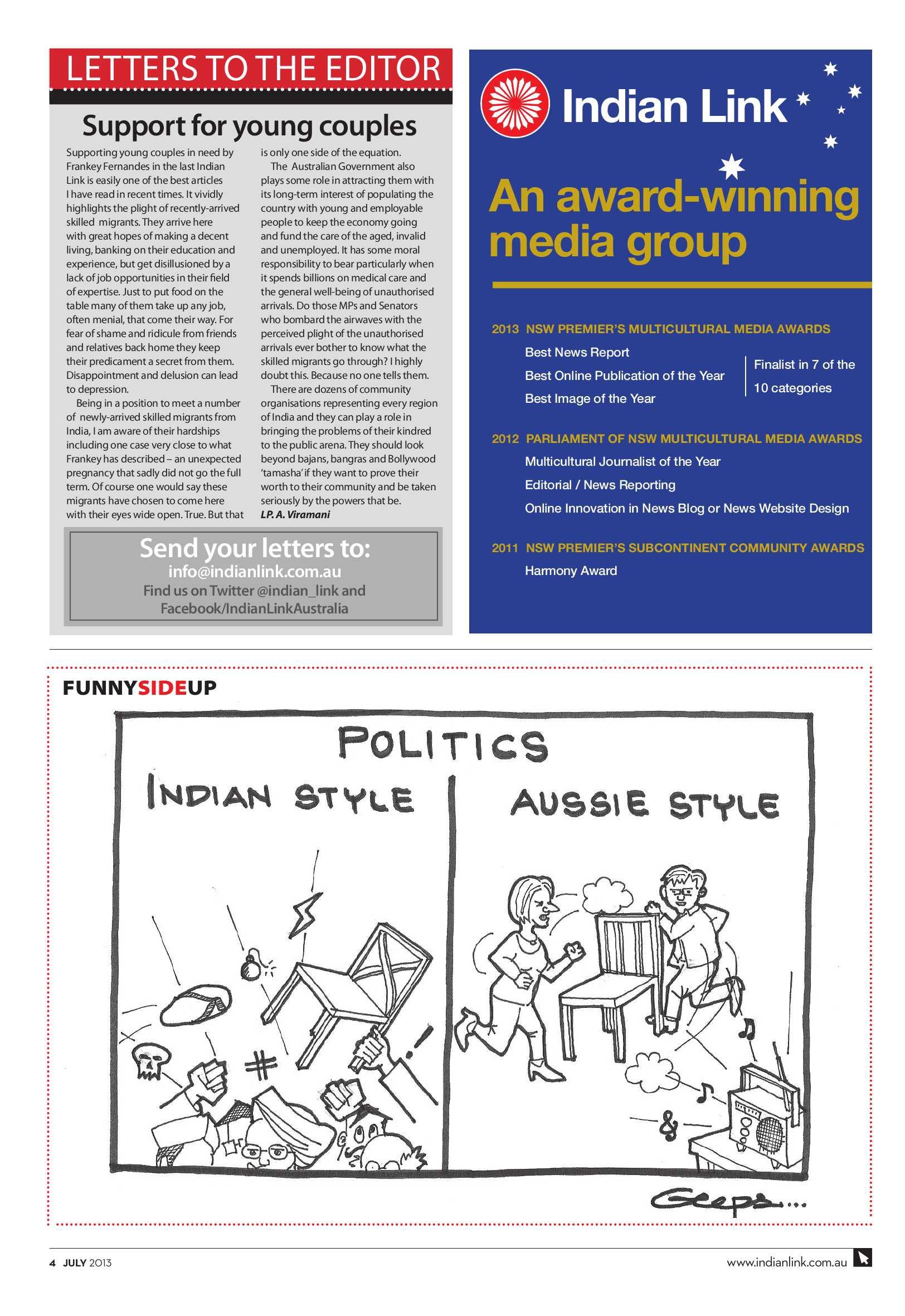 Find us on Twitter @in dian_link and Facebook/lndianlinkAustralia FUNNYSIDE UP PoL,TICS INt>tAt-1 &1'VLE Auss, e. STY\.e I 4 JULY 2013 www.indianlink.com.au ll
