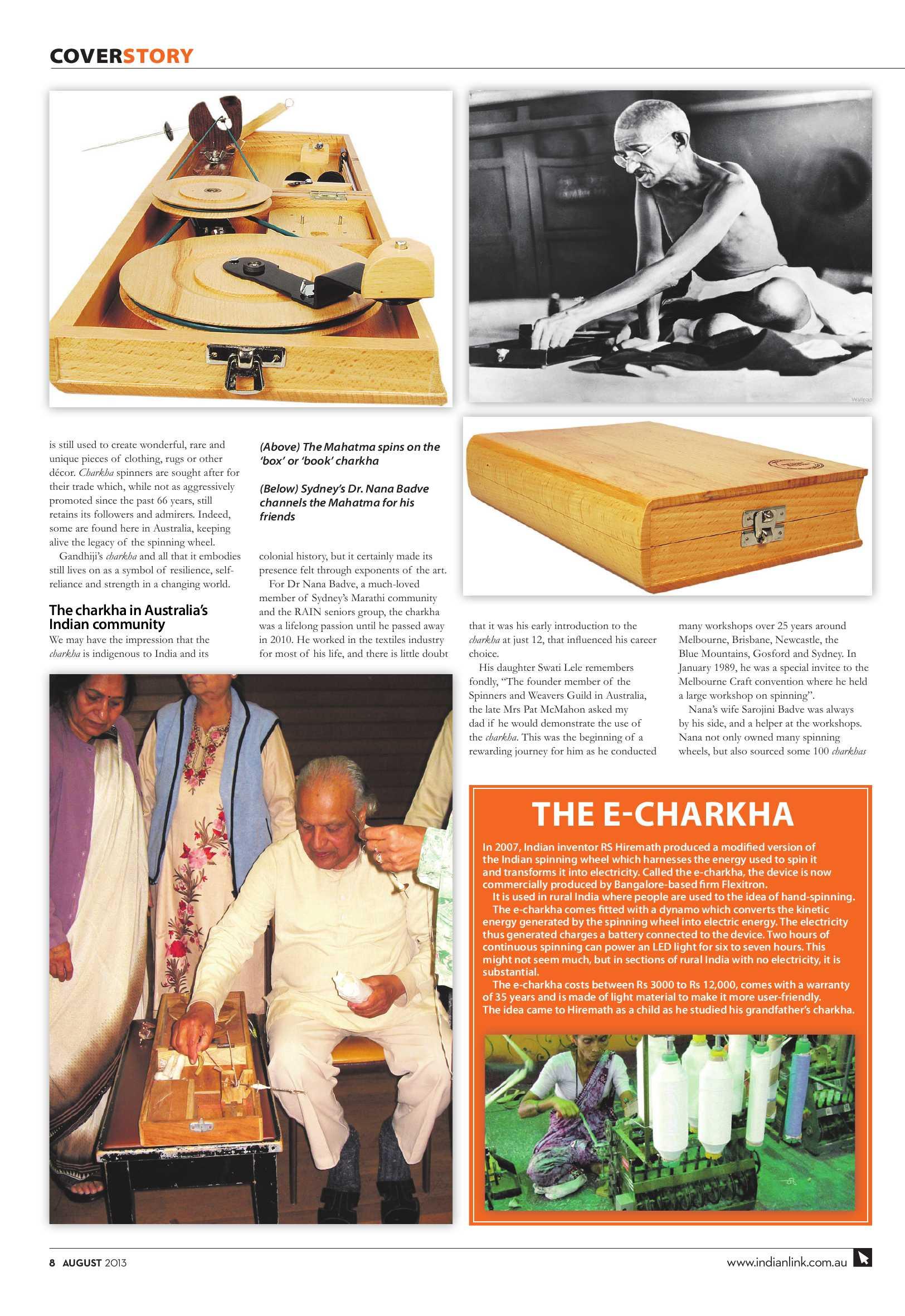 For Dr Nana Badve, a much - loved member of Sydney'.s Marathi community a nd the RAIN seniors group, the charkha ·was a lifelo n g passion until he passed away in 2010. H e worked in the textiles industry for most of his Life, and there is little doubt
