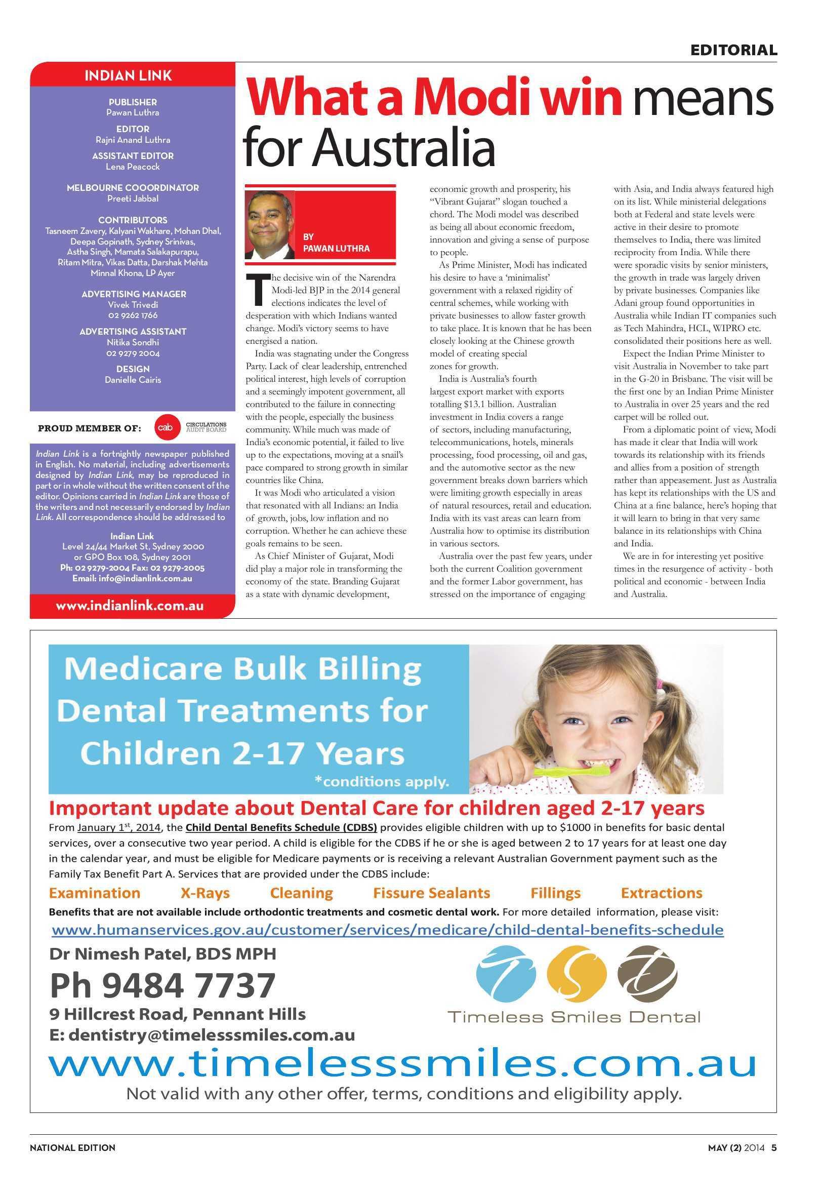 Prom a dipl o matic point of view, Modi h as made it cl ear that lndia will work towards irs rela tionship with its frie n ds and allies from a position of su·ength rad1er than appeasem ent. Just as Australia h as kept its relationships wirb die US an d Cli.ina at a fine balance, here's h opi n g tbat i t will learn co bring in d1at very same balance in its relatio nships with China and lndia.