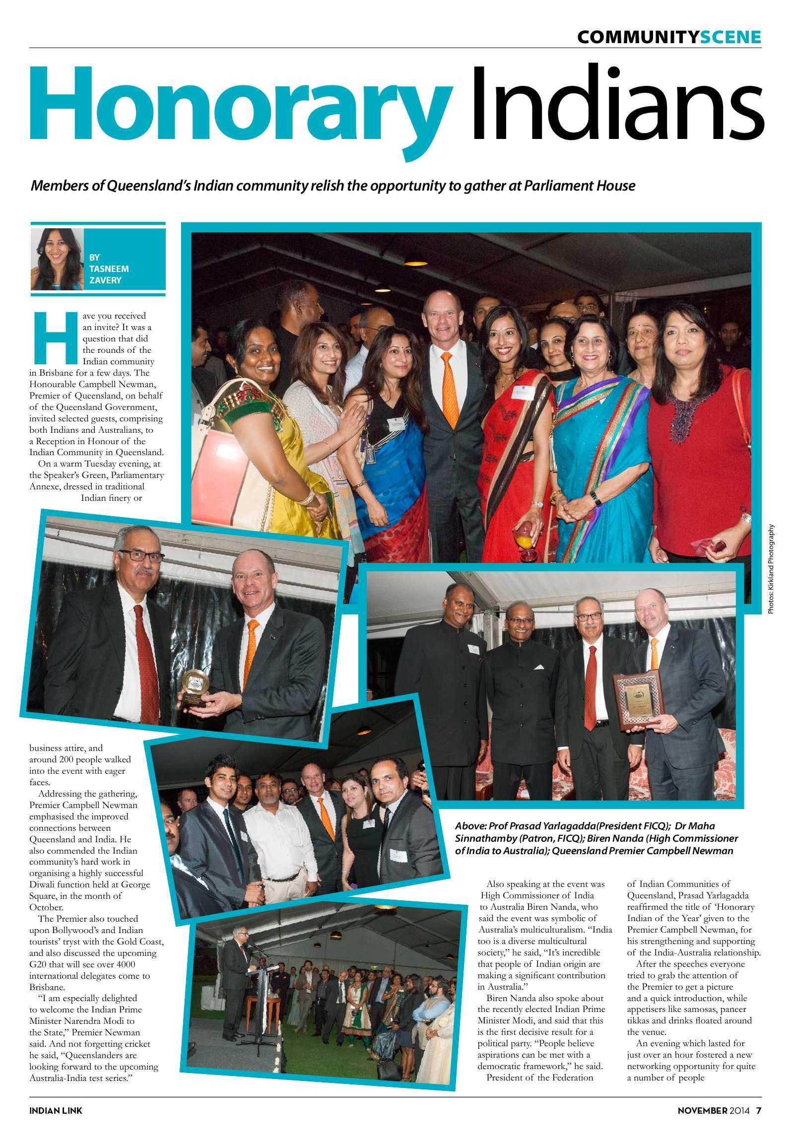 Have you recei ved an invite? It was a question that did the rounds of the Indian community io Brisbane for a few days The Honourable Campbell Newman, Premier of Queens land, on behalf of the Queensland Government, invited se lected guests, compris ing both Indians and Australians, to a Reception in Honour of the Indian Community io Queen sland.