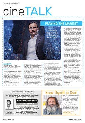 NOVEMBER 2018 5 NATIONAL EDITION Visit telstra.com/nbnsmart Visit your local Telstra store Subscription charges and data usage applies. Min cost includes $99 connection charge for new Telstra Home Phone or Broadband customers. Actual speeds may be lower due to in-home set-up and wiring. MC/18 TEL1202 Entertain yourself this summer Stream desi entertainment to your big screen on YuppTV with Telstra TV®. Get unlimited home broadband data + Telstra TV® for $99/mth. Min cost $2,475 over 24 months. Standard Plus Evening Speed 40Mbps typical min speeds 7pm-11pm on nbn. Big Boss now on Colors TV TEL1202 30 OCT - LOTE L4 BUNDLES - SA - 358x250 - INDIAN LINK.indd 1 26/10/18 2:56 pm