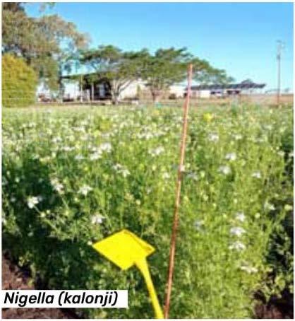 Attheuniversity'sInstituteforFuture FarmingSystemsi11 Rockhampton,Dr Bhattarai'steamislookingcloselyatblack sesame(kaalatil),fennel(saunf), nigelJaseeds (kalonji),caraway(shahijeera)andcunun (jeera).