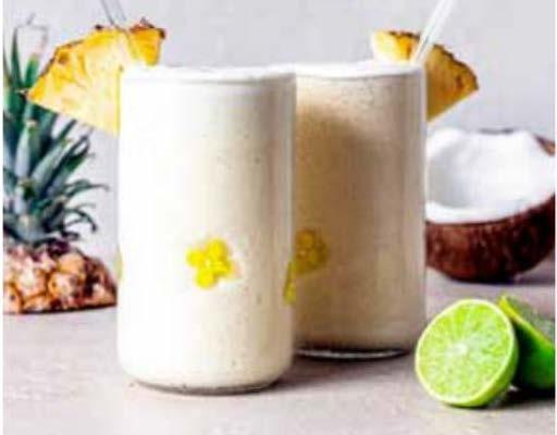 ■ Placeall ingredients intoahigh-speedblender and blend untilsmoothand creamy,addingextra almond milkifthe mixtureistoothickfromthe frozen pineapple.Servewithfresh pineapple. Recipes and pies: califiafarms.com.au