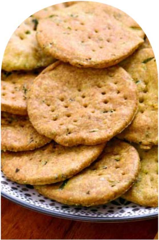 ■ Placethe mathri inthebasket.Cookfor12-13mins at170degC.Sprayoilonceandflipsothatitis cookedevenlyonallsidesandisgoldenbrown.