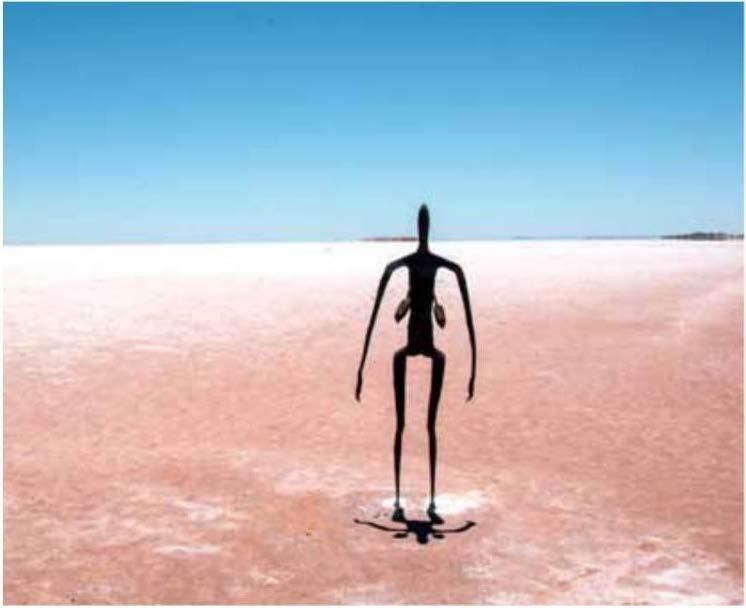 As part of 'Australia's largest outdoorgallery', these metalstatuettes live permanentlyin a desert expanse. Where inAustralia?