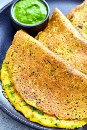 This nutritious pancake is a soft crepe, and is wonderful with a hot sambhar and a traditional chutney.