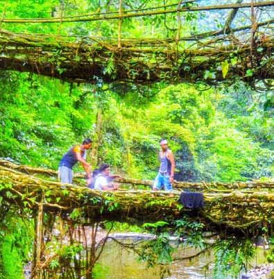 These natural suspension bridges are formed by weaving together tree roots and branches, showcasing ancient engineering brilliance.