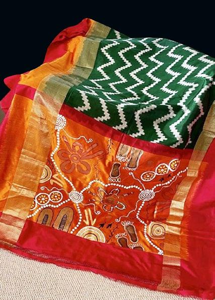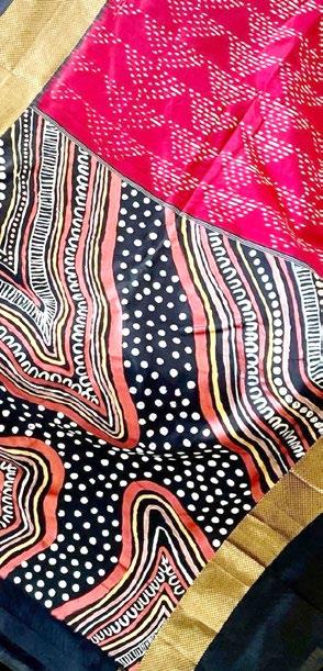 RAJNI ANAND LUTHRA and NADINE SILVA on the designs of Aboriginal artist Preston Warren coming together with the allure of designer Shivanie Dheeraj’s saris to create a sold-out collection Presten Warren of Painted Studios wrote: Loved working on this project!