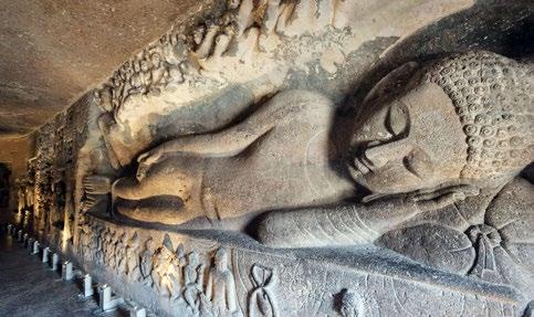Following the traditions of Buddhist monastic architecture, the caves were designed either as chaityas (prayer halls) or viharas (monastic residences where monks lived, studied, and meditated). Both types were lavishly adorned with intricate murals, carvings, and statues, including monumental depictions of the Buddha in various postures - sitting, standing, and reclining. Unfortunately, like Cambodia’s Angkor Wat and Indonesia’s Borobudur, the cave temples of Ajanta were abandoned around the 8th