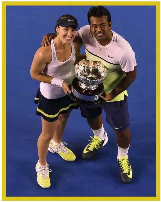 ndia'sLeander Paes,,vith his partner Switzedand's Martina Hingis, won theAustralian Open mi"<ed doubles crown in MelbourneonSunday 1 February