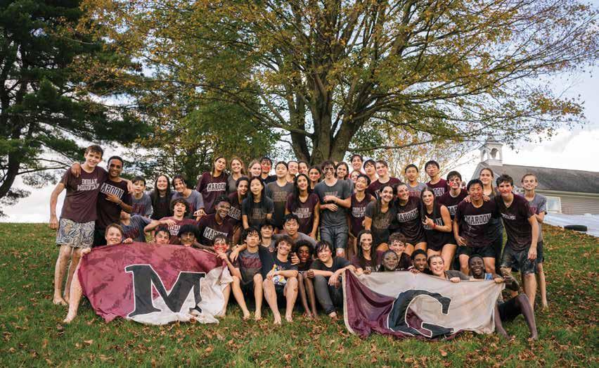We embrace our 600-acre campus through our start-of-year color-sorting hike, and the friendly competition kicks off from there. School spirit hits a peak on Mountain Day, a time-honored Maroon v. Gray day of outdoor fun and games. Throughout the year, students participate in academic, athletic, and service-based activities, earning points for their team and showcasing their passion for the community. Maroon’s flag replaced Gray’s flag during the 2024 Prize Day Ceremony. Will they hold on to their win next year?