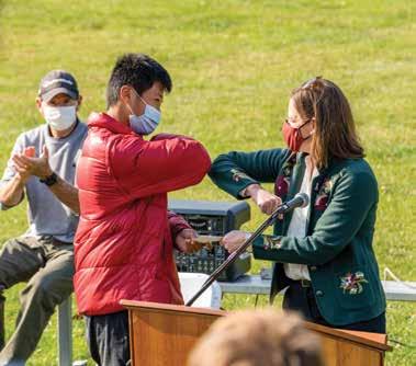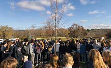 October 2023: Jody Reilly Soja watches as students gather for Mountain Day (see page 37).