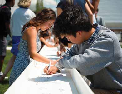 Our exceptional music and theater programs will soon have a new space in which to thrive. Work is almost complete on converting our former gym into a state-of-the-art venue for performing arts, daily assemblies, visiting speakers, and community gatherings. In May, students signed one of the beams that will support the structure for years to come.