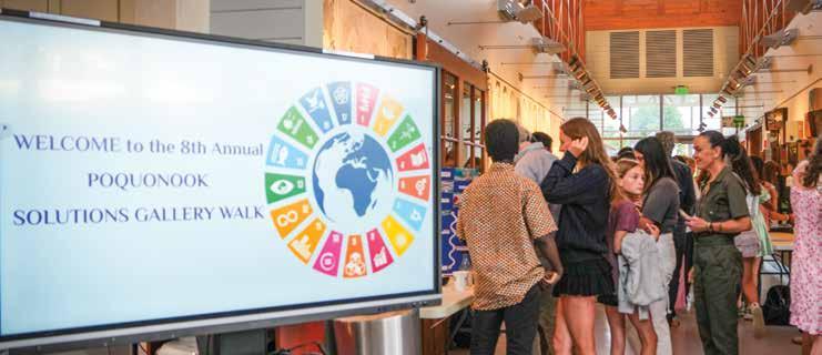 In their last year at IMS, our ninth graders do a year long deep dive into the United Nations Sustainable Development Goals (SDGs). These UN goals are bold: ending poverty, fighting inequality, improving education for all, tackling climate change, and more (there are seventeen). Students then form groups and are challenged to design original, viable, solutions to real world issues related to the SDGs. This is their capstone project, and they present their solutions to a panel of experts and the IMS community at the Poquonook Solutions Symposium. Some of this year’s remarkable projects included: a method for turning invasive plants into synthetic alternatives, a portable solar desalination system, an educational hub for vicims of abuse, and a plant-based clothing solution to combat fast fashion.