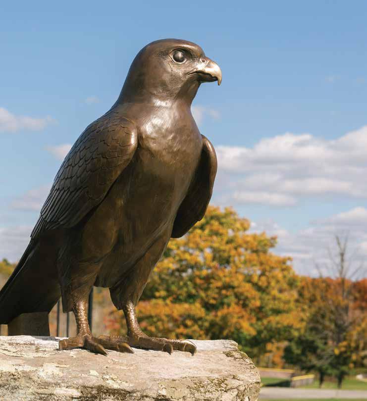Justin Renshaw ’88, P’24, is credited with originating the falcon as our mascot during his time here at IMS. When he saw a video of the Mountain Day fake-out on social media, he called together a group of his IMS friends to commission an actual bronze falcon statue. Now Freddie the Falcon stands proudly outside the Morehead Athletic Center.