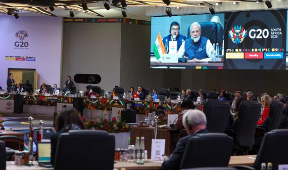 Johannesburg: Prime Minister Narendra Modi addresses Session 2 of the G20 Leaders’ Summit in Johannesburg, South Africa, on Saturday, November 22, 2025.