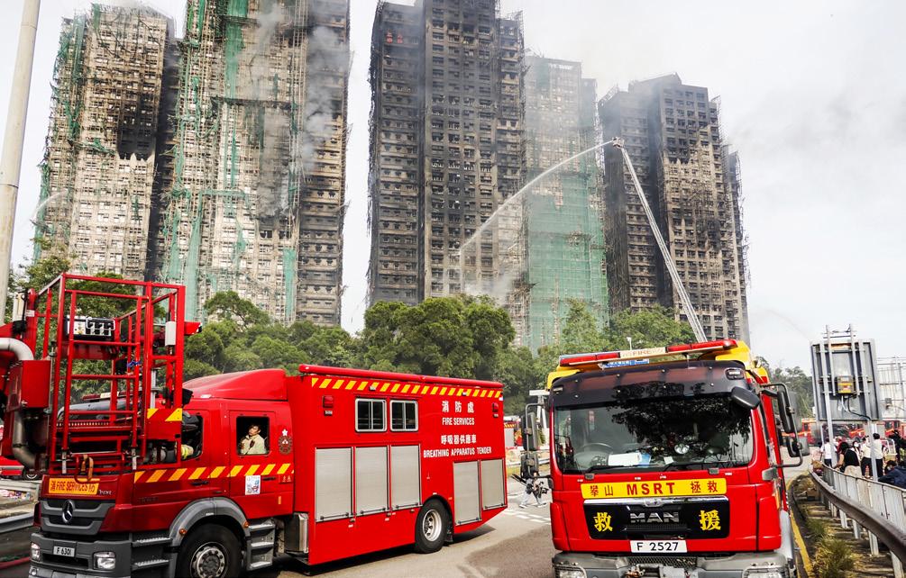 The residential area Wang Fuk Court consists of eight buildings, all of which were encased by green mesh and scaffolding due to a major renovation project. Three men responsible for the renovations were arrested earlier for suspected manslaughter, as the police investigation pointed to flammable materials covering the buildings as a possible cause for the rapid spread of fire. It is considered as the worst blazes Hong Kong has seen in decades. Earlier, Hong Kong Chief Executive John Lee said in the small hours on Thursday that the fire at Wang Fuk Court has been gradually brought under control after firefighters' tireless efforts. Speaking at a press briefing, Lee