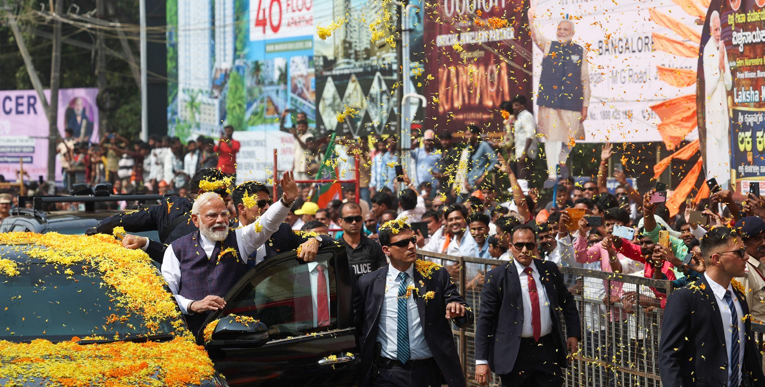 Udupi: Prime Minister Narendra Modi receives a warm welcome from people upon his arrival in Udupi, Karnataka, on Friday, November 28, 2025.