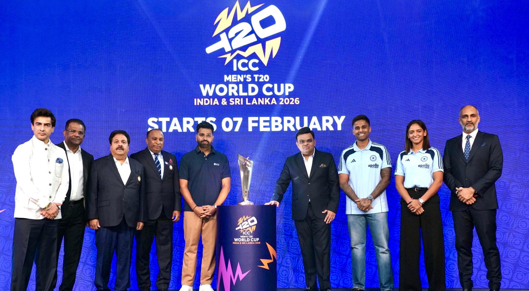 Mumbai: ICC Chairman Jay Shah, BCCI Secretary Devajit Saikia, ICC brand ambassador for the Men’s T20 World Cup 2026 Rohit Sharma, India’s T20 captain Suryakumar Yadav,