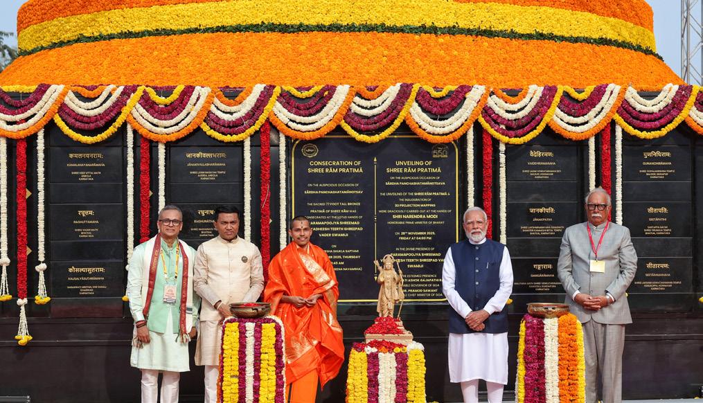 Gokarna: Prime Minister Narendra Modi during the unveiling of a 77-foot statue of Prabhu Shri Ram at Shree Samsthan Gokarn Partagali Jeevottam Math in Gokarna on Friday, November 28, 2025.