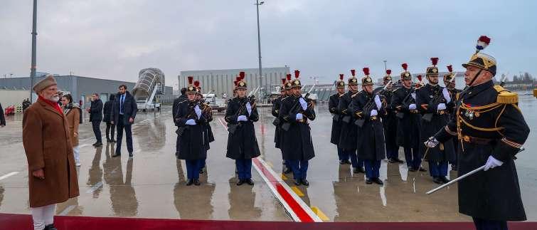 Paris: Prime Minister Narendra Modi receives a ceremonial welcome upon his arrival in Paris, France, on Monday, February 10, 2025.