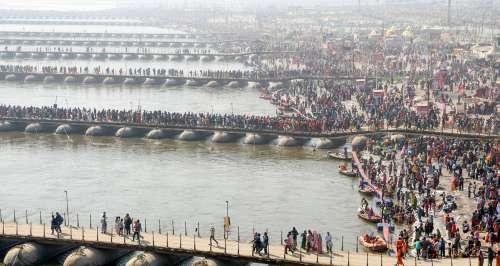 Prayagraj: Pilgrims walk on a pontoon bridge towards the Triveni Sangam, the confluence of the Ganga, Yamuna, and the mythological Saraswati rivers, during the ongoing Maha Kumbh Mela 2025, in Prayagraj on Tuesday, February 11, 2025.