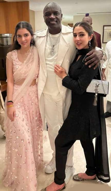 Bollywood actress Sara Ali Khan had a fan moment as she met American singer Akon and posed with him for pictures at a wedding.