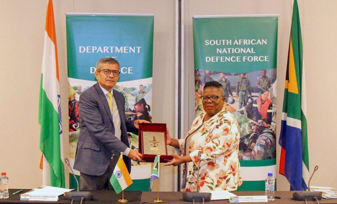 Johannesburg: Defence Secretary Rajesh Kumar Singh with Acting Secretary for Defence of South Africa, Dr Thobekile Gamede,
