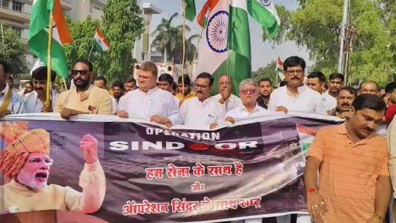 Ranchi: Minister of State for Defence Sanjay Seth participates in the 150-feet-long ‘Tiranga Yatra’ to mark the success of ‘Operation Sindoor’ in Ranchi, Jharkhand, on Wednesday, May 14, 2025.