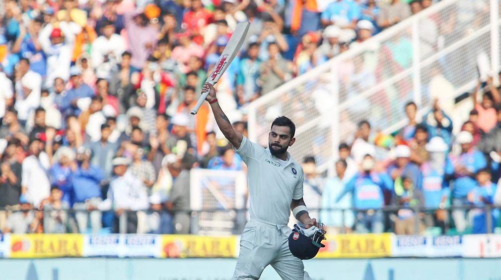 Nagpur: Indian captain Virat Kohli acknowledges the crowd as he walks back to the pavilion after getting dismissed on Day 3 of the second test match between India and Sri Lanka at Vidarbha Cricket Association Stadium in Nagpur on Nov 26, 2017. He scored 213 runs.