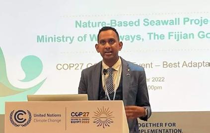 At COP27, he was co-lead for the Adaptation Stream, presenting at six side events and showcasing Fiji’s adaptation projects and NbS efforts. Vinay also supported the UNDP Pacific Office in Fiji to launch the Fijian Sustainable Bond Framework to help Fiji better communicate its sustainable development finance priorities with investors.