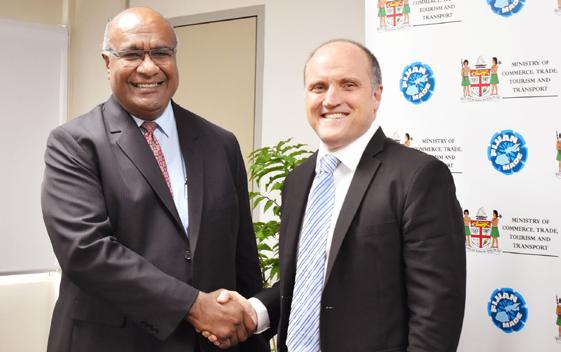 The Deputy Prime Minister and the Minister for External Trade, Co-operatives and SMEs and Communications Manoa 454 Kamikamica received a courtesy visit recently from the Chargé d’affaires of the Australian High Commission in Fiji, John Williams.