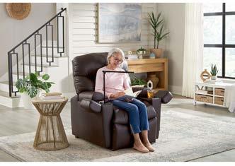 Right arm compartments feature the hand control dock, wireless phone charger, and power port that holds either the LED reading light or removeable butler tray table that come standard. Left arm compartments feature a drink holder, USB charging port and more storage. The Cloud+ is available in Three Sizes – Small, Medium & Large.