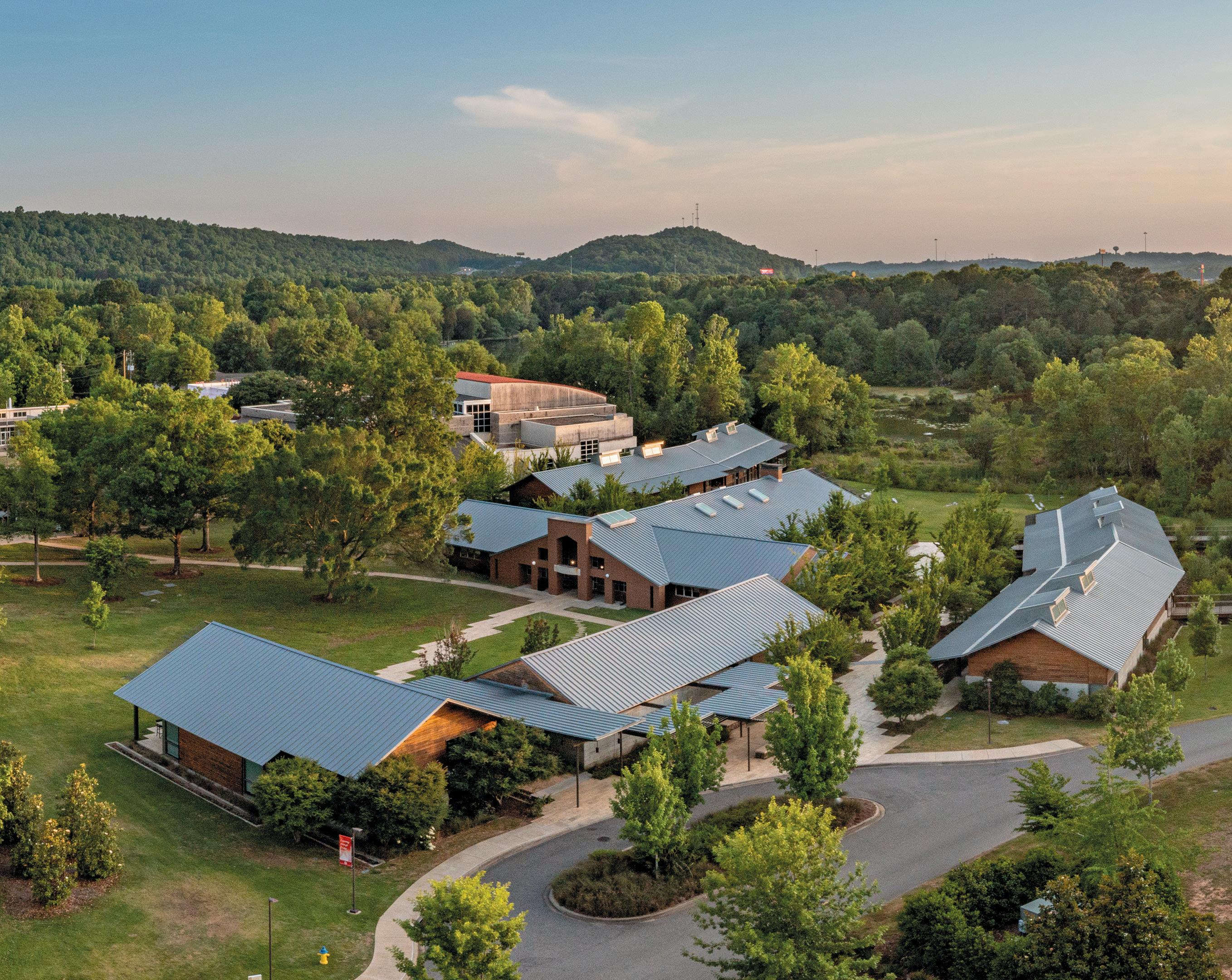Our buildings are designed to work with the landscape. Every classroom is open to the environment. We have our own lake, and we’re steps away from Alabama’s largest state park. You can conduct biological research in the forest and stream; you can canoe in the lake between classes; you can grow fresh produce in the organic garden. This is an education that’s immersed in the world.