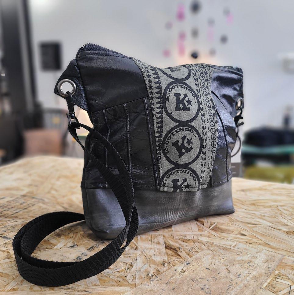 autre forme où le caractère durable et imperméable devient une valeur ajoutée pour les sacs ou les portes-feuilles. Karoline aime aussi intégrer du cuir, une autre matière durable, et des tissus qu’elle se plaît à agencer et sur lesquels elle peut imprimer des designs uniques. Les possibilités d’assemblages s’en trouvent décuplées.